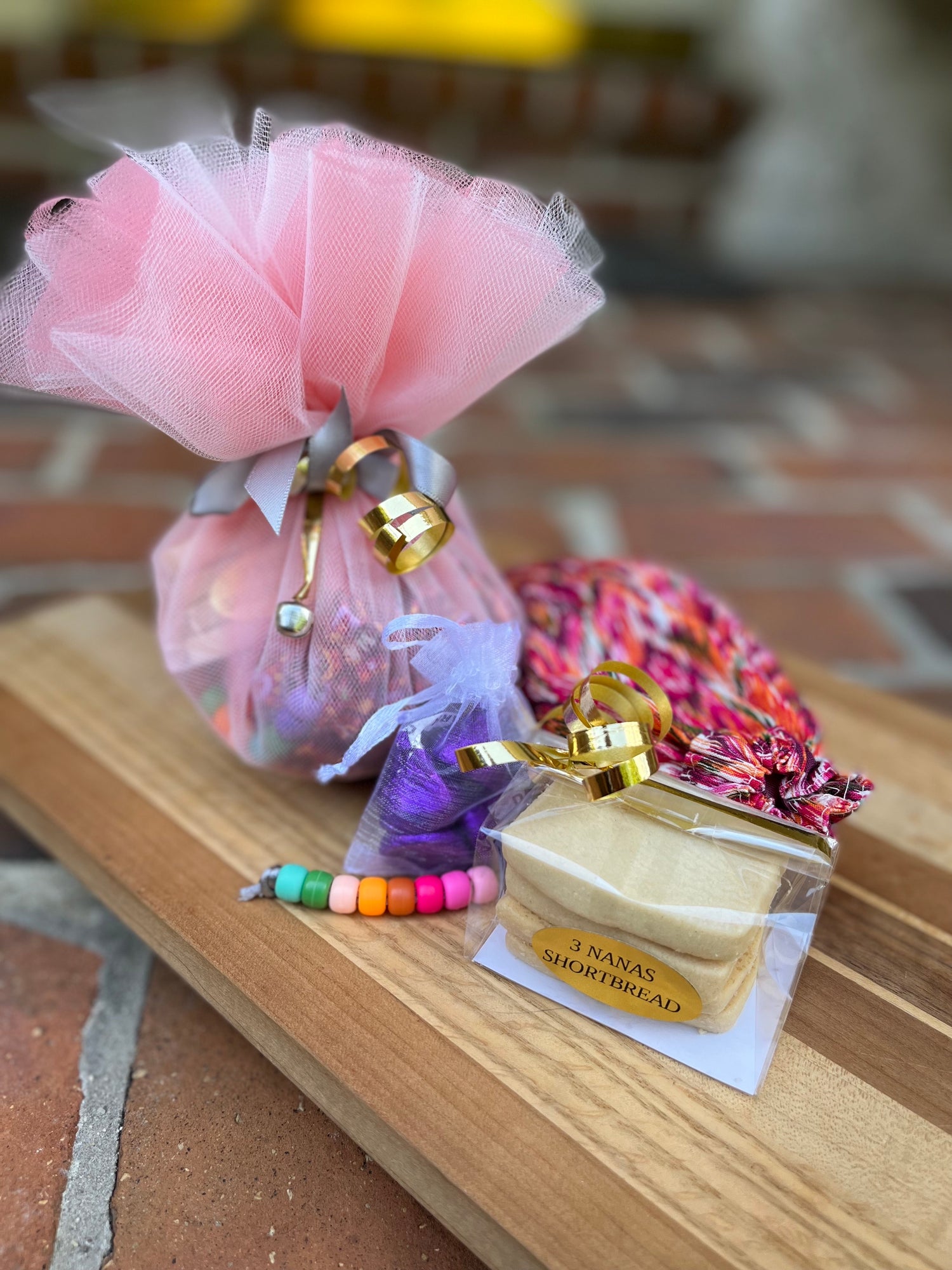 These gorgeous gifts include an Eye Kozy, 1 pack of 3 Nanas Traditional Shortbread (4 pieces) ( Chocolate or Gluten Free option) and a tiny bag of Dark Chocolate Kisses. Tied together with tulle ( colour of your choosing) and a silver bell. I am happy to include some wonderful organic cruelty free skin care for the bride or mum-to-be, along with a gourmet bar of dark chocolate at an additional cost. These make ideal Shower gifts or Shower favours.Please mail Rhonda directly